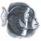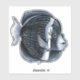Pegatina de pescado lindo con un ilustracion digital monocromo que representa un extraño gracioso con pestañas dibujadas con tinta digital. Los peces no tienen pestañas, pero esto se ha hecho muy elegante.
