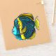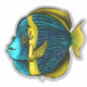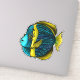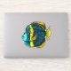 Divertido pegatina de peces con una obra de arte digital que representa una bella angelácea tropical con pestañas largas con colores azules y amarillos adorables.