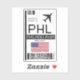 Pegatina PHL Philadelphia, tarjeta de embarque del aeropuer