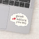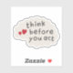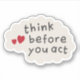 Pegatina con el texto "Piensa antes de actuar" en un fondo de silueta cerebral