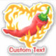 Pimienta picante roja con llama en forma de corazón. Texto personalizado.