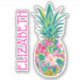 Este pegatina de vinilo preppy cuenta con una adorable piña floral tropical rosa y verde. Personaliza con tu elección de nombre o texto especial. Diversión por favores de fiesta personalizados y bolsas de regalo.