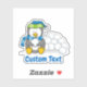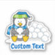 Un pequeño personalizado de pingüino sentado y sosteniendo una bola de nieve. Texto personalizado.