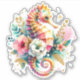 Pegatina Pintura costera rosa, azul y dorada Caballo marino