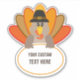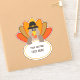 Plantilla de pegatina para ser personalizada con tu propio texto, con un divertido pavo gorra de peregrinos.