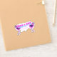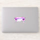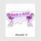 Ilustracion de diseño de texto "Miami Beach" de estilo retro con flamencos y decoración triangular de colores vivos azul, blanco y rosa en medio tono de fondo