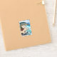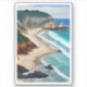 bonita playa de arena blanca y agua turquesa. La playa está rodeada de acantilados con vegetación. El agua es cristalina y las olas se estrellan en la orilla. La imagen se toma desde un gran ángulo, mirando hacia la playa. El cielo es azul con algunas nubes.
