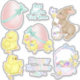 Bienvenido a la Primavera con este lindo tema de Pascua. El set cuenta con conejos blancos y marrones, pollitos para bebés y una cesta de mimbre con flores de tulipán y mariposa.
