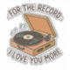 Diseño estético retro pegatina con un reproductor de discos vintage con un dulce mensaje romántico: "Para que conste, te amo más". Perfecto para parejas, amantes de la música y todo aquel que quiera difundir el amor de una manera única. 🎶 💘