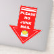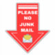 Esta "Calcomanía de flecha roja con letrero de 'Por favor, no correo basura'" proporciona un mensaje claro y directo al personal de entrega, solicitando amablemente que se abstengan de entregar correo basura no deseado. La calcomanía presenta las palabras "Por favor, no correo basura" en texto en negrita, junto con una flecha roja que apunta a un área designada donde se pueden dejar volantes o folletos.