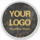 Pegatina de redondeo portátil con un elegante fondo de mármol negro y dorado, sube el logotipo de su empresa y personalizar las áreas de texto. Ideal para realizar un seguimiento de la propiedad de negocios.