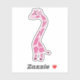 Pegatina de la jirafa rosa quirky. Dibujo a mano para decorar tu laptop, equipos, diarios y más.