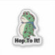 This cute and quirky sticker features a charming cartoon frog with a green spotted back, a white belly, and a stylish blue bandana. The frog has a determined expression, perfectly matching the motivational phrase "Hop To It!" written below it. This design is perfect for adding a touch of fun and encouragement to your laptop, water bottle, journal, or any other surface you want to personalize. It's an ideal gift for anyone who needs a little push to get things done!