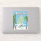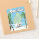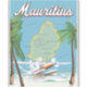 Mapa ilustrado de Mauricio en un hermoso estilo vintage o retro, con un avión de mar aterrizando en una hermosa playa.