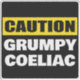 CAUCIÓN GRUMPY COELIAC pegatina Si conoces algún Coeliacs / Celiacs, sabrás lo gruñón que pueden conseguir si no encuentran comida sin gluten. Cambie el texto blanco de este pegatina a las palabras que desee.
