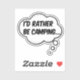 Prefiero acampar. Burbuja del discurso personalizado en blanco y negro con una cita graciosa. Personalizados pegatinas de vinilo. Un diseño para la gente a la que le encanta acampar.