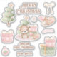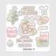 Pegatinas de Kiss-Cut Vinyl en rosa y verde con un adorable oso bebé y árbol de Navidad, adorables elementos Navidades y texto personalizado para una niña o niña pequeña. Personaliza fácilmente todo el texto. - Kate Eden Art