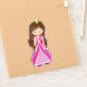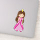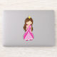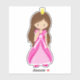 Pegatina Princesa Cuta, Corona, Pelo Marrón, Vestido Rosa