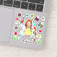 Pegatinas de caries personalizados son una historia de princesa de cabello rojo, unicornio, mariposa y nombre.