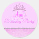 Este elegante pegatina de cumpleaños personalizable cuenta con una tiara rosa sobre un fondo rosa claro. Personalizar añadiendo tus detalles en la letra de tu elección!