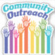 Hermoso diseño de alcance comunitario para que las comunidades ayuden a sus ciudadanos con programas gubernamentales y sin fines de lucro. Un lindo arcoiris de manos llegando para ayudar a otros.