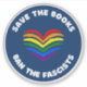 Este pegatina difunde un fuerte mensaje anti-censura con su frase "Salven los libros prohíben a los fascistas" junto a un colorido corazón arco iris sobre un fondo azul circular. La censura de la literatura LGBTQIA+ y BIPOC en las escuelas es errónea. Los ataques en todo el país de una minoría ruidosa son preocupantes por los derechos de los estudiantes y educadores de nuestra nación, y especialmente devastadores para los niños en estas comunidades. ¡Muestre su apoyo a nuestros estudiantes y educadores y haga frente a estos fascistas! Diseño actualizado por CtrlZ Digital Designs 2025