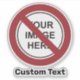 Signo de círculo de prohibición con imagen personalizado. Texto personalizado.