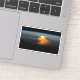 5 de julio de 2018 - Esta fotografía oblicua muestra el sol en el horizonte y la costa de las provincias canadienses de Terranova y Labrador, con Quebec más tierra adentro. Sólo había una estrecha ventana de oportunidad para esta foto de la luz del sol. La reflexión del Sol se estaba moviendo a través de las estrechas (separando la isla de Terranova y el Labrador continental) y en una ruptura entre dos bancos en la nube.