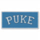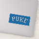 Pegatina PUKE (blanco y negro desenfadado sobre azul)