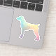 Silueta de raza de perro de un puntero alemán de corta duración lleno de un patrón geométrico colorido. Esta silueta también puede representar al alemán de pelo corto Pointer, Weimaraner, Fantasma gris, Gantasma gris, Weimaraner Vorstehund, Puntero Weimer, Fantasma plateada, Perro de ave inglés, viejo puntero danés, Perro de punción continental, Collie suave