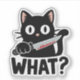 Pegatina ¿Qué? Gato negro con cuchillo divertida vinilo