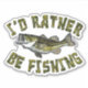 Una imagen de pez trasero está entre la frase que PREFERIRÍA ESTAR PESCANDO. El texto se rellena con un patrón de camuflaje que coordina con el pez de la lubina.