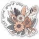 Este pegatina está diseñado para espíritus y soñadores libres que aprecian el estilo de vida bohemio. Este pegatina muestra una delicada mezcla de flores y plumas de color mutado, que resume la esencia de la moda boho. Perfecto para añadir un toque de fantasía e inspiración a tus objetos favoritos.