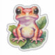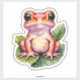 Un pegatina vinílico kawaii de una rana linda parada sobre hojas.