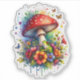 Pegatina Rana dulce, flores, mariposas y champiñones