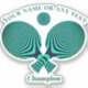 Diseño retro de dos raquetas de ping-pong y una bola de ping-pong de color verde turquesa con un patrón hipnótico sobre un fondo amarillo para los amantes del ping-pong y de los tabletennis.