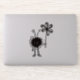 Mal criatura pegatina con el Mal Flor Bug en su reencarnación vintage - personalizado sonriente personaje malvado con dientes afilados sosteniendo una flor sobre fondo texturizado oscuro. Es malvado y algo lindo. Ama las flores... de hecho, le encanta comerlas. Este personaje malvado hará un gran regalo para alguien que ama los diseños góticos y los ilustraciones peculiares. O solo criaturas graciosas. El gracioso insecto malvado es parte de la familia del Malvado Flor Bug - peludos personajes malvados negros frecuentemente encontrados haciendo malas acciones, comiendo flores y simplemente divirtiéndose.