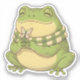Adorable ilustración de Zochi la rana acogedora siendo gentil, rodeada de hongos, hojas de lirio y tonos cálidos y suaves. Perfecta para amantes de la naturaleza y fans del estilo acogedor.