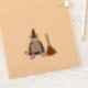 Esta impresionante hoja de pegatina con forma de muestra una imagen de arte digital de una adorable bruja gris de rata con orejas rosas, nariz, pies y cola. La rata está usando un gorra puntiagudo negro con una hebilla de oro y estrellas moradas por todas partes. Las ratas llevan también un manto negro cubierto de estrellas moradas. Junto a la rata hay una escoba marrón hecha de ramas. Esta rata está vestida lista para una fiesta de Halloween.