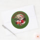 Ratón vestido con Santa Suit está entregando paquetes bajo un árbol. Texto "Feliz Navidad" en rojo con una sombra negra sobre un fondo verde medio. Contenido generativo