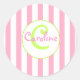 Monograma y Pegatina de nombres. Rayas rosas y blancas con acentos de cal