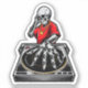 Esta imagen muestra una figura esquelética, que recuerda a la Parca Grim Reaper, actuando como DJ. El esqueleto está vestido con una camisa roja y una cadena dorada, lo que le da una estética de hip-hop. Está sosteniendo un par de audífonos a una oreja y está colocado detrás de una mesa giratoria. Sus manos óseas se ciernen sobre el registro, listas para mezclarse y rascarse. El tono general de la imagen es a la vez lúdico y un poco amenazante, combinando la figura icónica de la Parca Grim Reaper con la cultura contemporánea del DJ.