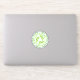 Reciclar, reutilizar, reducir presupuesto con Pegatina de flechas verdes. Este diseño ecológico incluye las palabras "reciclar", "reutilizar" y reducir" en tres tonos verdes y flechas en el centro que van con hojas verdes.