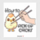 Recoge a las chicas, dice gracioso, pegatinas. Una sola línea, graciosa. Pollos, pollos, palillos. "Cómo recoger chicas". Pun, juega con las palabras, insinuando.
