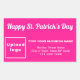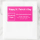 Rectangle pegatina con Feliz Día de San Patricio, su nombre de negocio y otra información de su negocio. Puede utilizarlo como accesorio de su material de embalaje de producto para promocionar su marca de producto. También puede utilizarlo como material de marketing para promocionar su negocio a clientes o clientes. pegatina de personalizable que puede utilizar para crear conciencia de marca. Los colores de diseño son textos blancos sobre fondo rosado. Para personalizar de este pegatina, cargue el logotipo de su empresa, escriba su nombre de negocio, dirección y número de teléfono. Después de subir el logotipo y escribir textos, por favor compruebe la apariencia. Si la apariencia le resulta agradable, puede realizar su pedido ahora. Si necesita cambiar el tamaño y mover el logotipo y los textos para que encajen en este pegatina, cambie la herramienta de diseño. También puede realizar otros cambios en la herramienta de diseño según la apariencia de este pegatina que prefiera, como cambiar el color de fondo, el color del tipo de letra y el estilo del tipo de letra. ¡Feliz Día de San Patricio! Te deseo más ventas esta fiesta.