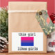 Muestra tu orgullo bisexual con este lindo pegatina. Con las palabras "a este chica le gustan los chicas" con la gran bandera del orgullo en el medio.