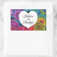 Pegatina Rectangular Acuarela Arcoiris Mandala con corazón