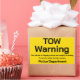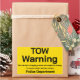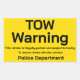 Letrero amarillo brillante que advierte que un automóvil, camión u otro vehículo está estacionado ilegalmente y está sujeto a ser remolcado. Esto está configurado para que pueda escribir el número del departamento de policía.