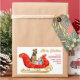 En estos pegatinas decorativos de vacaciones bonitos, un Perro Airedale Terrier se sienta en un trineo decorativo bonito rojo y dorado. Al lado del perro se sientan sus paquetes de regalo atados con arcos de colores. El texto de la escritura dorada a la derecha dice "FELIZ NAVIDAD" y el texto de tu personalizado está en rojo. Perfecto para la correspondencia de sus Navidades o paquetes de regalo! Imágenes más terribles, así como otras razas, en Dog Village.