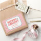 Este sticker de Navidad presenta un diseño alegre con un texto que dice "Te deseo una temporada de feriado y feriado". Puedes personalizar con tu nombre en la parte inferior. En la parte posterior hay otro patrón de rayas diagonales rosadas y rojas coordinadas.